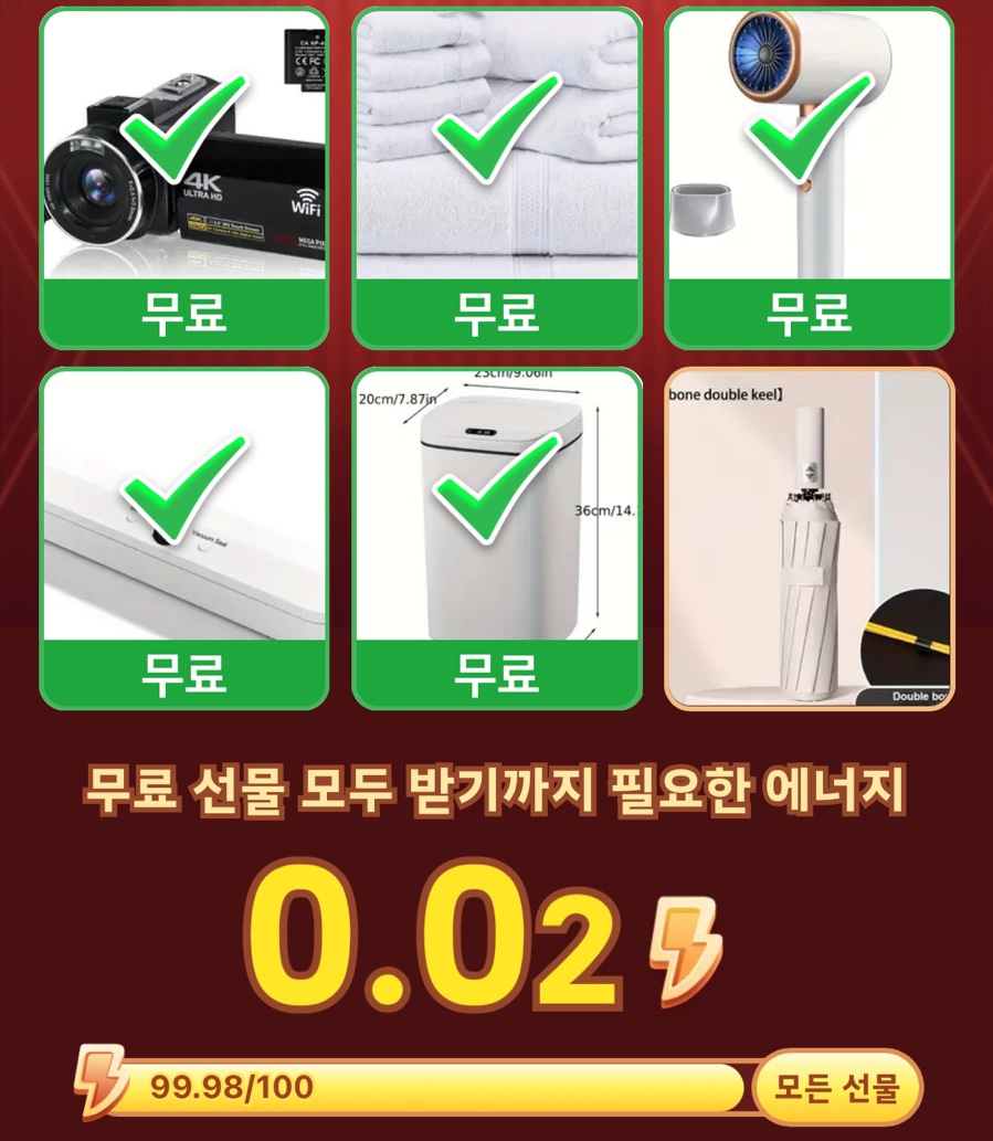 상품 2개를 고른 후 친구초대 혹은 친구초대링크를 받아 들어가면 물을 얻을 수 있습니다.